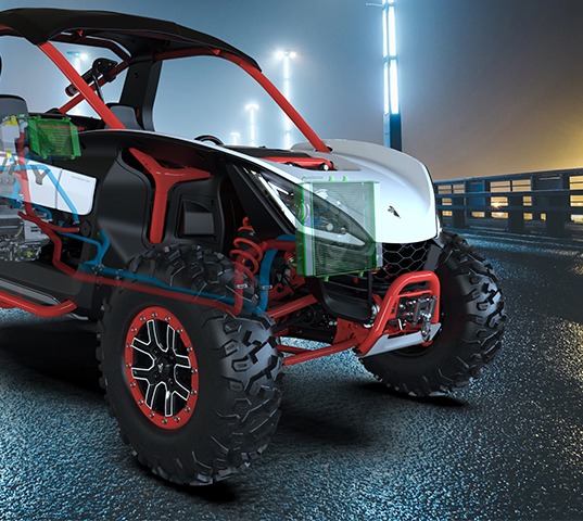Water and oil heat exchanger cooling system improves the reliability of power output under tough off-road conditions.